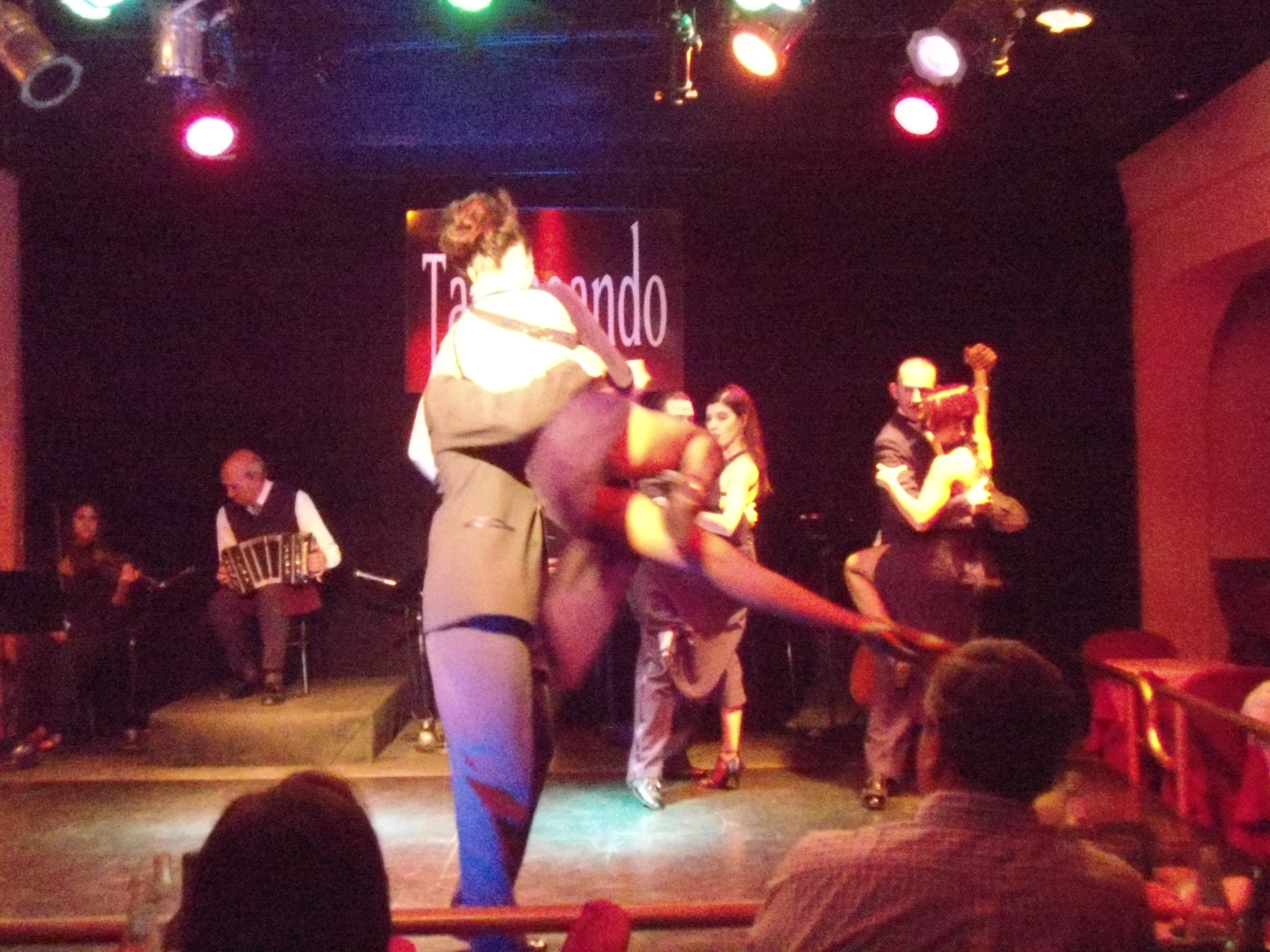 We ended up staying in a hostel just outside of the San Telmo district we stayed in before as Easter weekend had resulted in an influx of tourists filling up all nice hostels. The area wasn’t too special and each time a moped zoomed by we tensed up remembering our unpleasant incident in Mendoza. On the plus side, the internet was really quick so we were able to spend hours reading thousands and thousands of reviews of extortionately expensive tango shows each of which gave conflicting reports to try and decide which one to go to. In the end we gave up and went to San Telmo planning to wander round and have a look at a few of the venues and see if that helped us make our decision. First we went to Taconeando and were immediately collared by one of the dancers. After a bit of hard bargaining, we got a 3 course meal and the show for just over half it was officially advertised for.