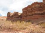 Surrounding Cafayate is the area of Quebrada de Cafayate, some of the most dramatic scenery we have encountered. So one afternoon off we set to explore the area. Just a 5 minute drive outside of town and you are accosted with huge changes, from vineyards to forest, to desert and then suddenly to the quebrada (which means a small valley, usually with a river at the bottom). This valley receives little rain that it is a haven for cacti and stunning wind-eroded rock formations as well as incredible geological marvels where red, green and yellow rock strata can be seen in front of multi-coloured mountains. A rock eroded into the shape of a toad, an enormous natural amphitheatre (where apparently one of the Gallagher brothers has performed) and the Devil’s Throat (an eerie cavernous splitting of the rocks that in Calchaqui tradition should not be entered as you will meet the devil). Having spent so much time in Patagonia we really didn’t think that the landscapes would be able to be beaten, but I have to say, this region certainly gives it a run for its money.
