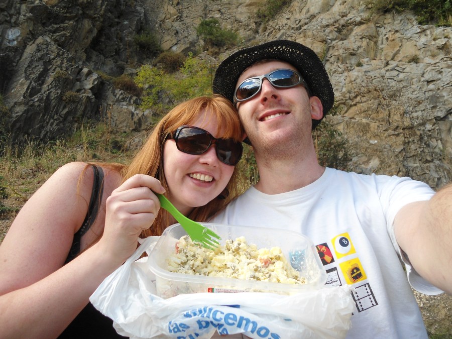 Eating our Russian salad left overs at the foot of the deserted waterfall