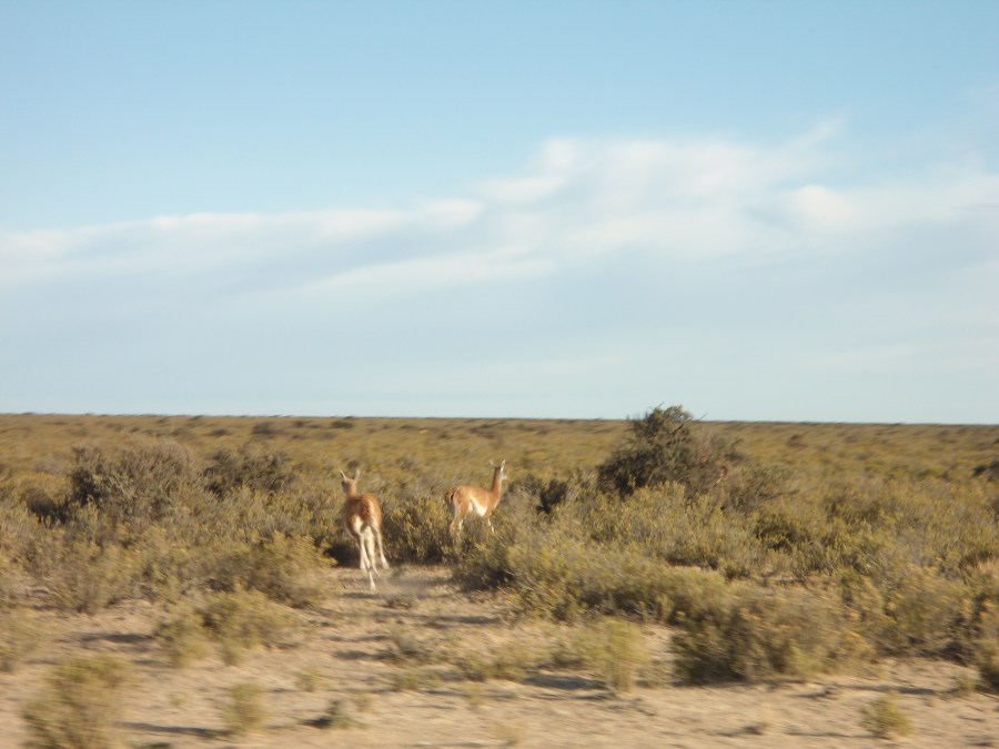 Guanacos (relatives of the llama) grazing by the road on Peninsula Valdes – apparently they can´t be tamed as they jump too high!