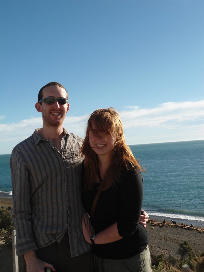 James watching the sealions on the beach at Punta Norte