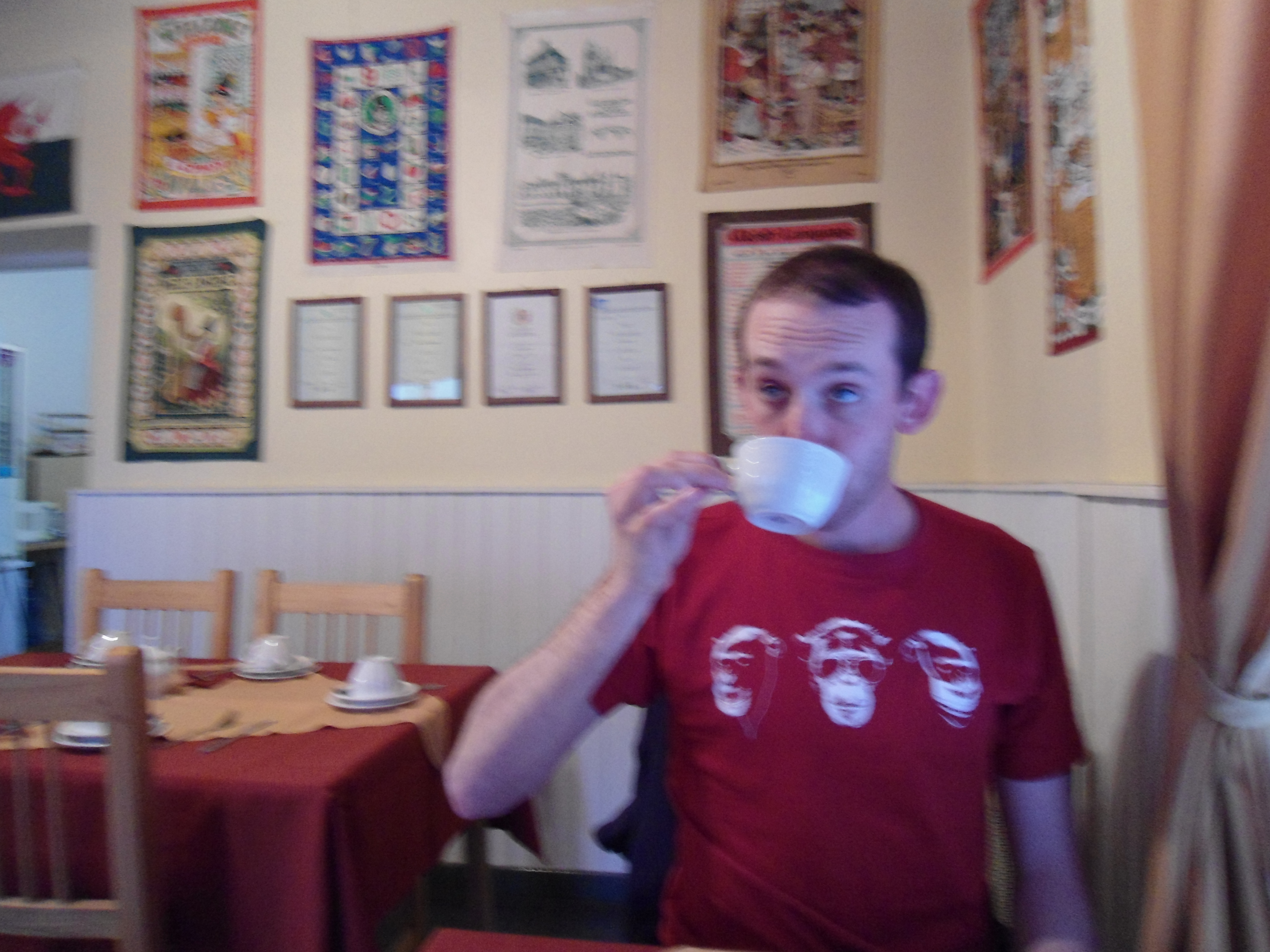 James outside the recycling park in Gaiman where everything is made from rubbish