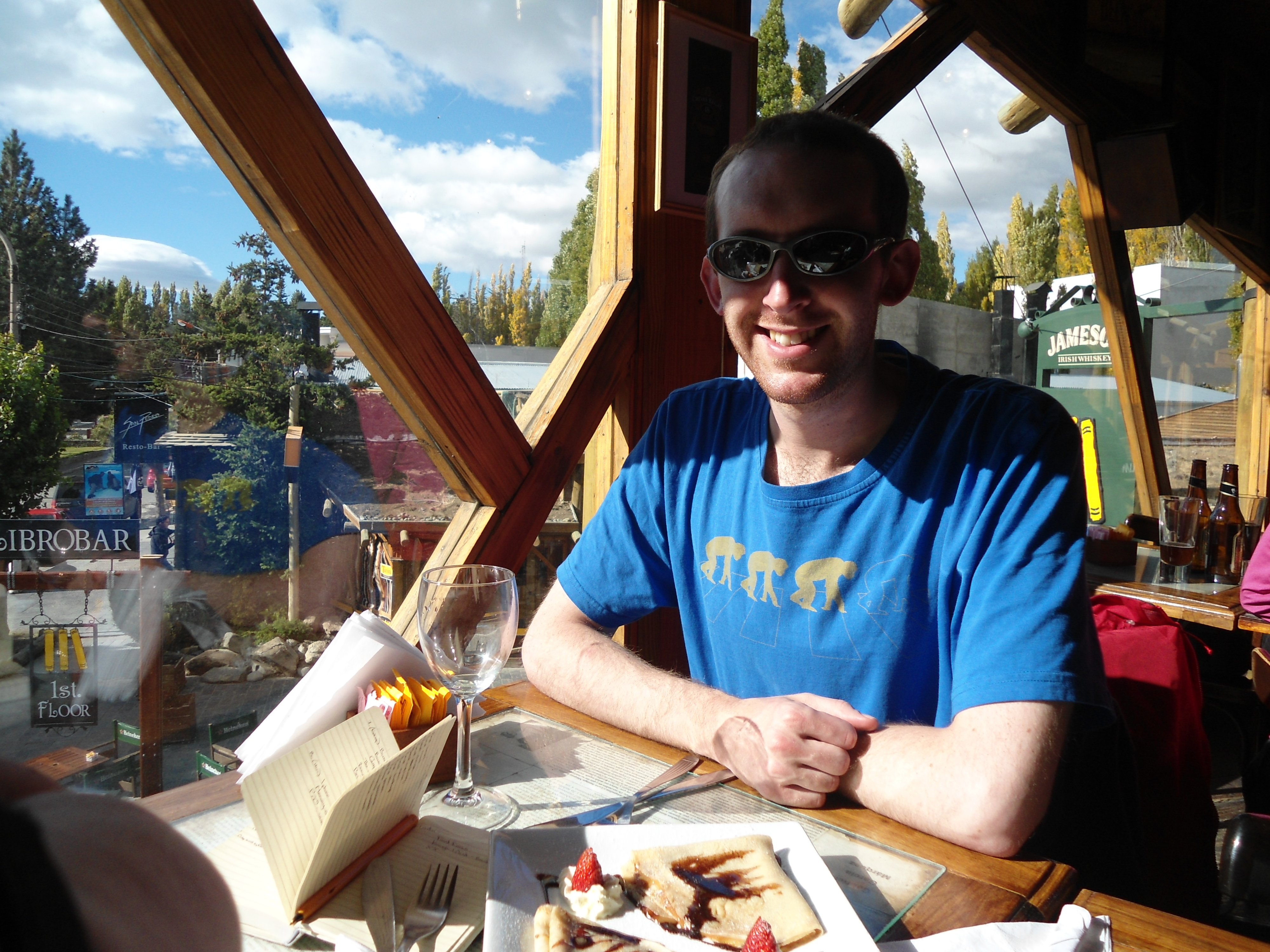 Enjoying the sun (and avoiding the cold!) in El Calafate with jamon y queso tostado & dulce de leche pancaque!!