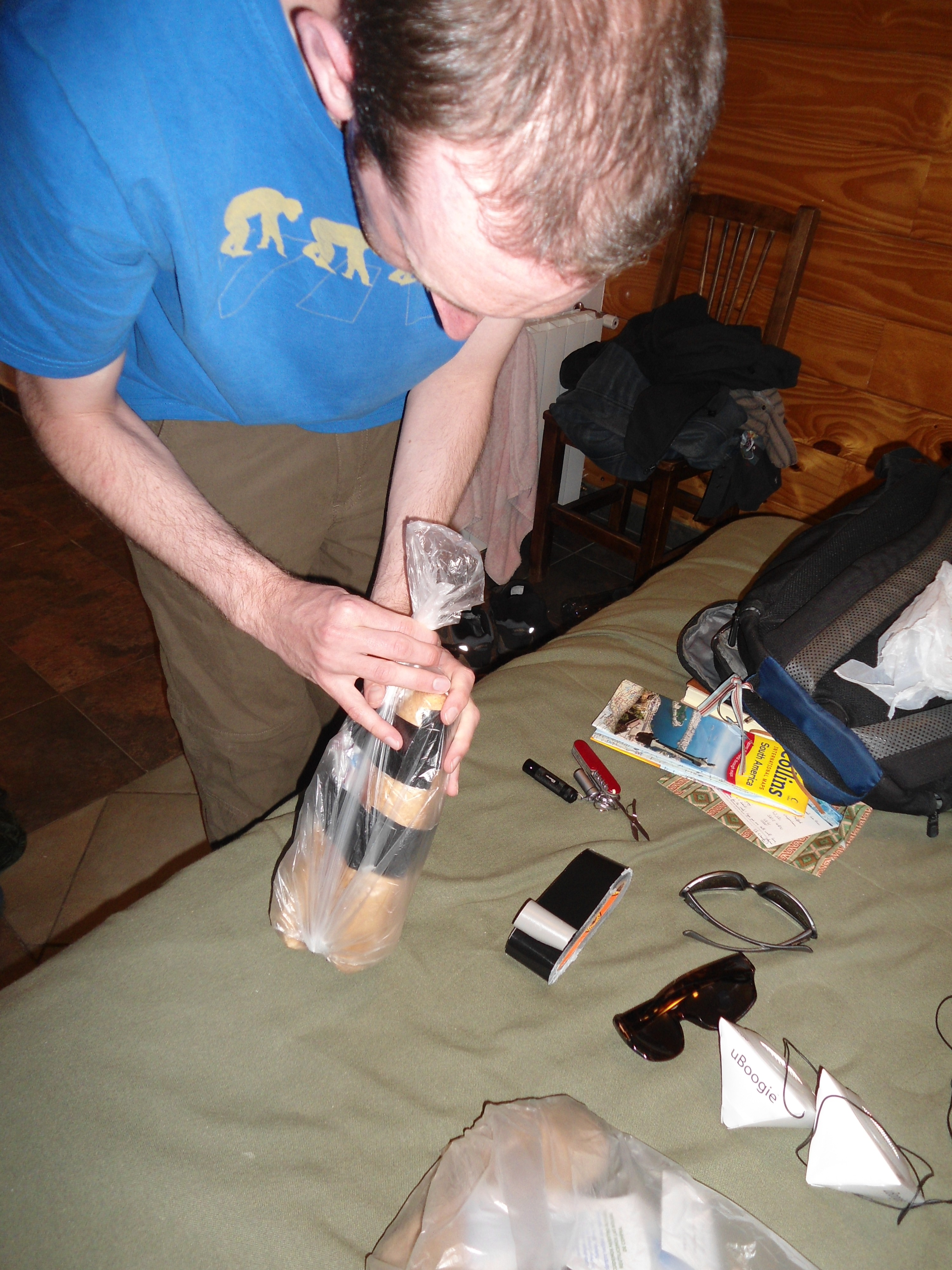 James putting our duct tape to good use – making a secure sanwich case for our AMAZING tna sandwiches
