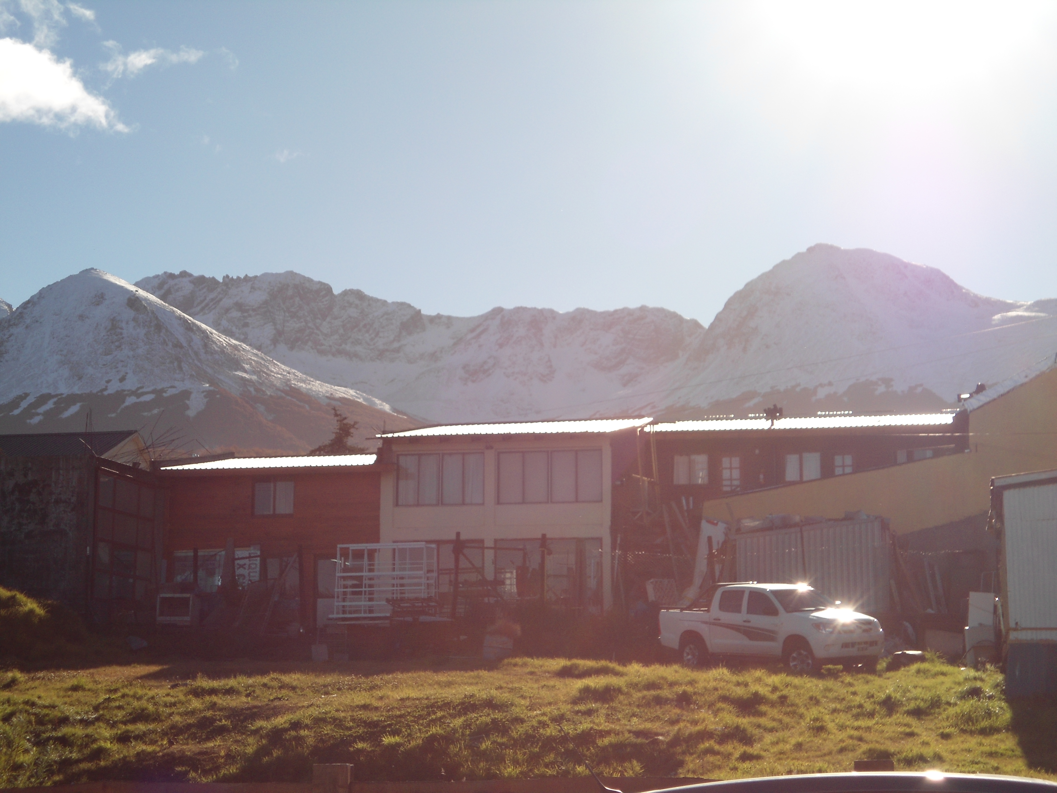 Sun shining over the mountains in Ushuaia