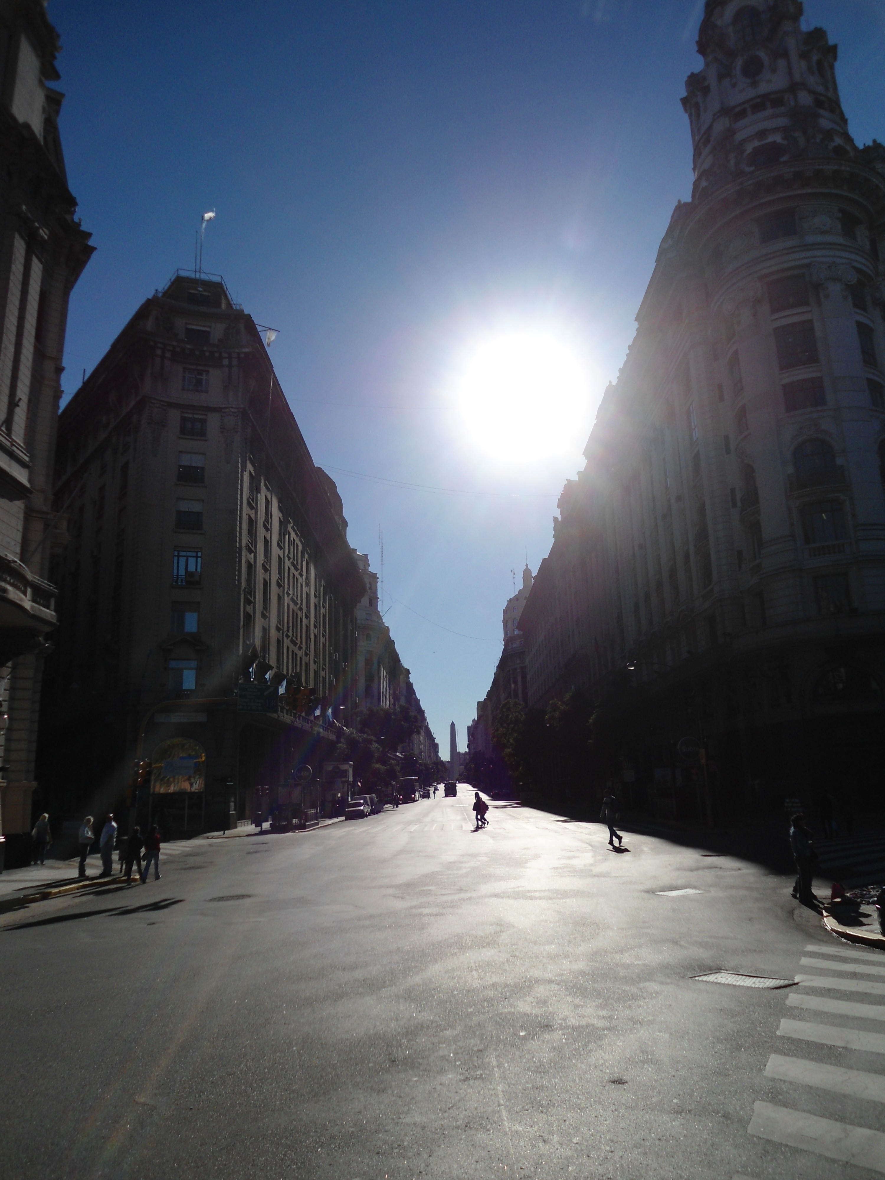 The Obelisk in the sun from Plaza de Mayo, Buenos Aires