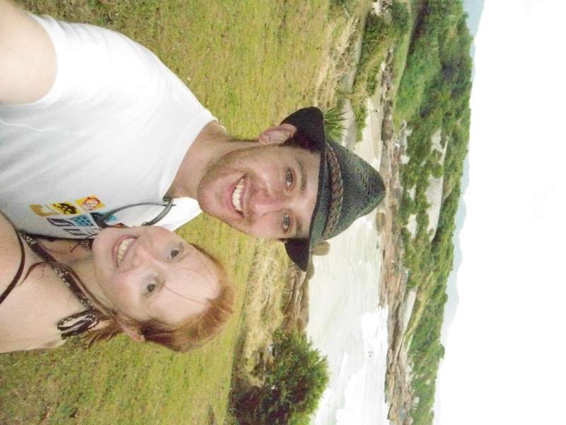 Us next to a banana tree above Praia Pequena