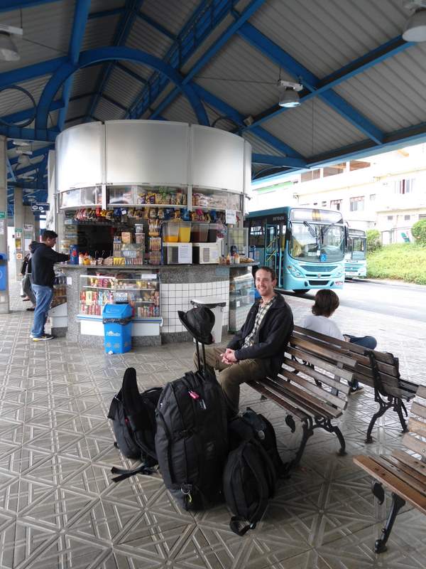 James at Lagoa bus terminal with our hundred and one bags – very civilised