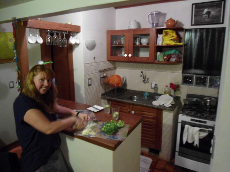Claire cooking in our kitchen in Portalagoa Studio