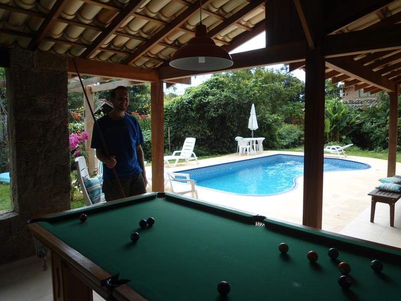Playing pool by the pool in Portalagoa