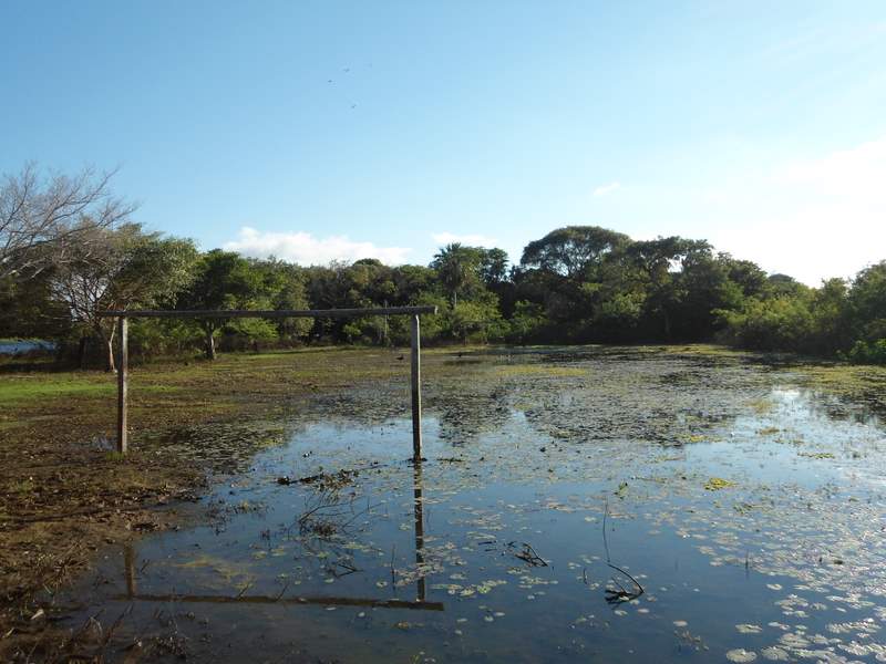 Claire watching the caiman, storks, cows and multicoloured birds as we arrived in Lontra