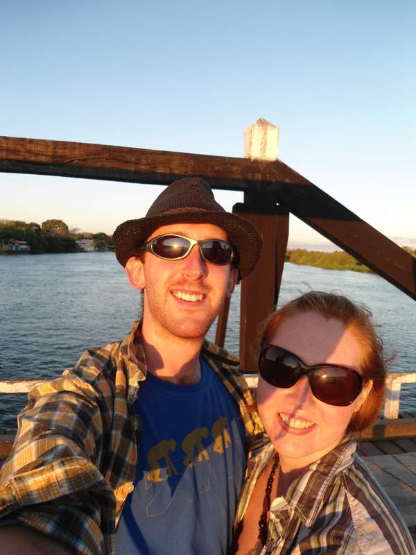 Us at sunset on the bridge in Lontra