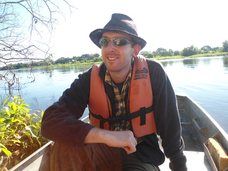 James watching as Sandro, our guide, searched for signs of the jaguar spotted the previous day