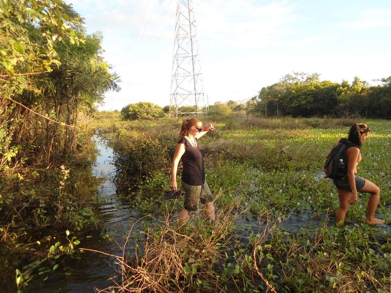 Claire and Anna-Marja crossing the wetlands