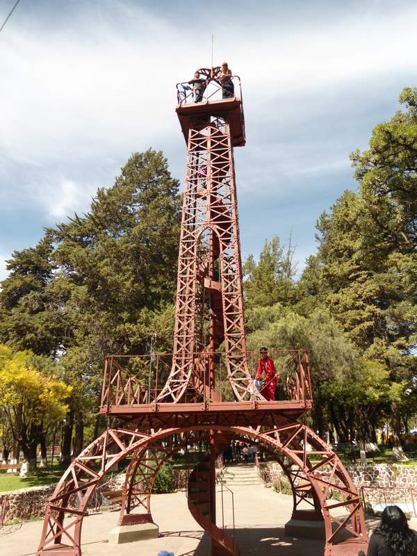 James climbing the mini Eiffel Tower, Sucre