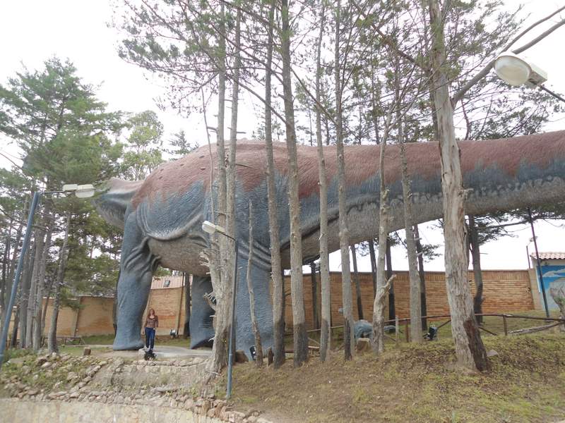 Claire under a replica of a “very big” dinossaur at the quarry outside Sucre