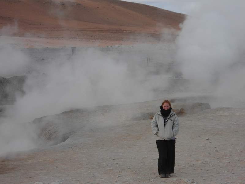 Claire standing by the geysers