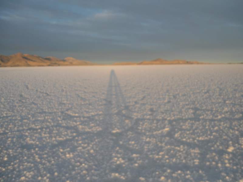 Our shadows at sunrise on Uyuni Salt Flats