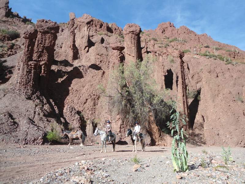 Us riding by sheer rock walls outside Tupiza, Bolivia