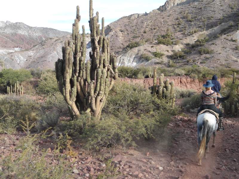 Claire riding past cactus