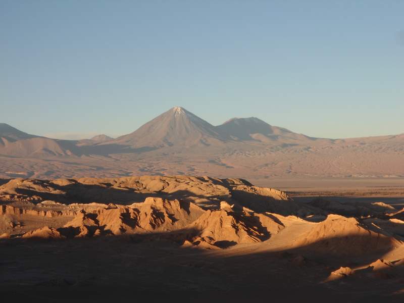 Sunset over Valle de la Luna, Atacama with the snowcapped Andes in the background