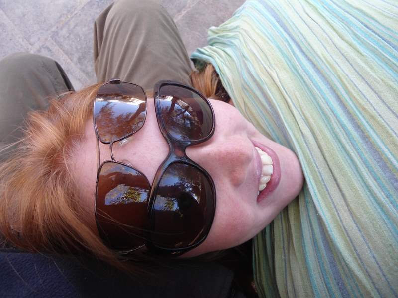 Claire trying to sleep on James’ lap in the plaza but James could not leave me alone!