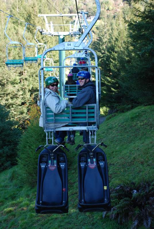 Claire & James on the chairlift after their first luge experience