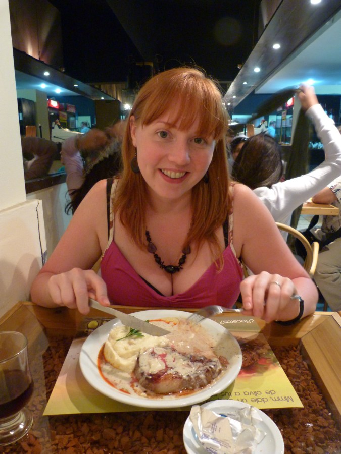 Claire with steak and mashed potato!