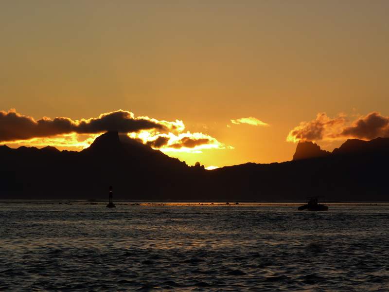 James enjoying a cup of tea on our porch at Robinson's Cove, Moorea