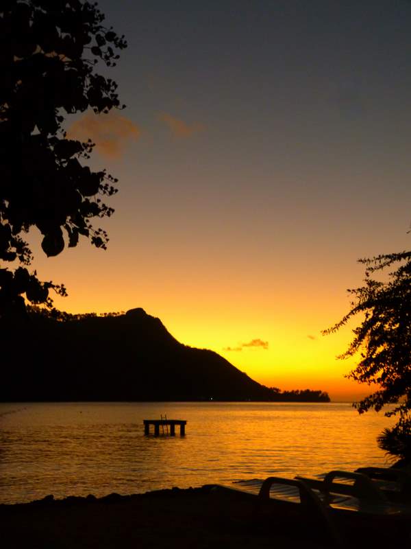 Sunset from our porch on Robinson’s Cove, Moorea