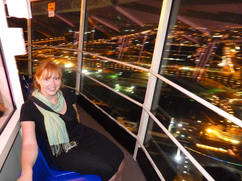 Claire on the revolving tower in Melaka, Malaysia