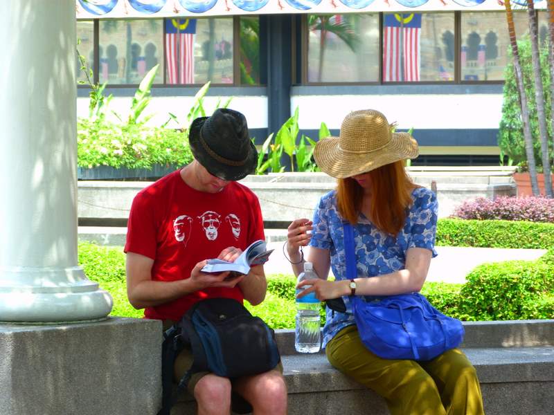 James and Lexi – the hat crew, sitting in Merdeka Square