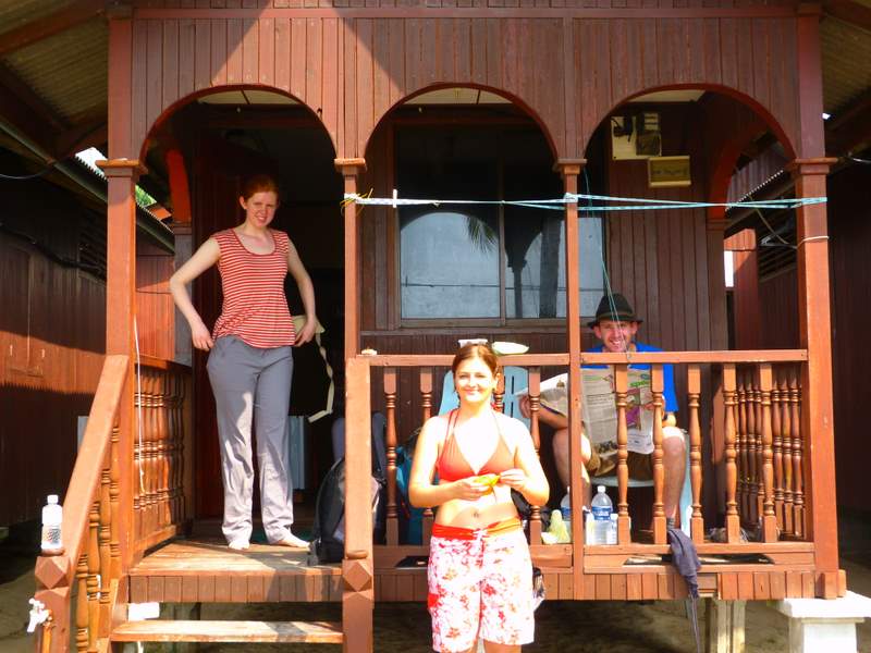 Lexi, Janet and James reading Jan’s guardian at our bangalow, Juara